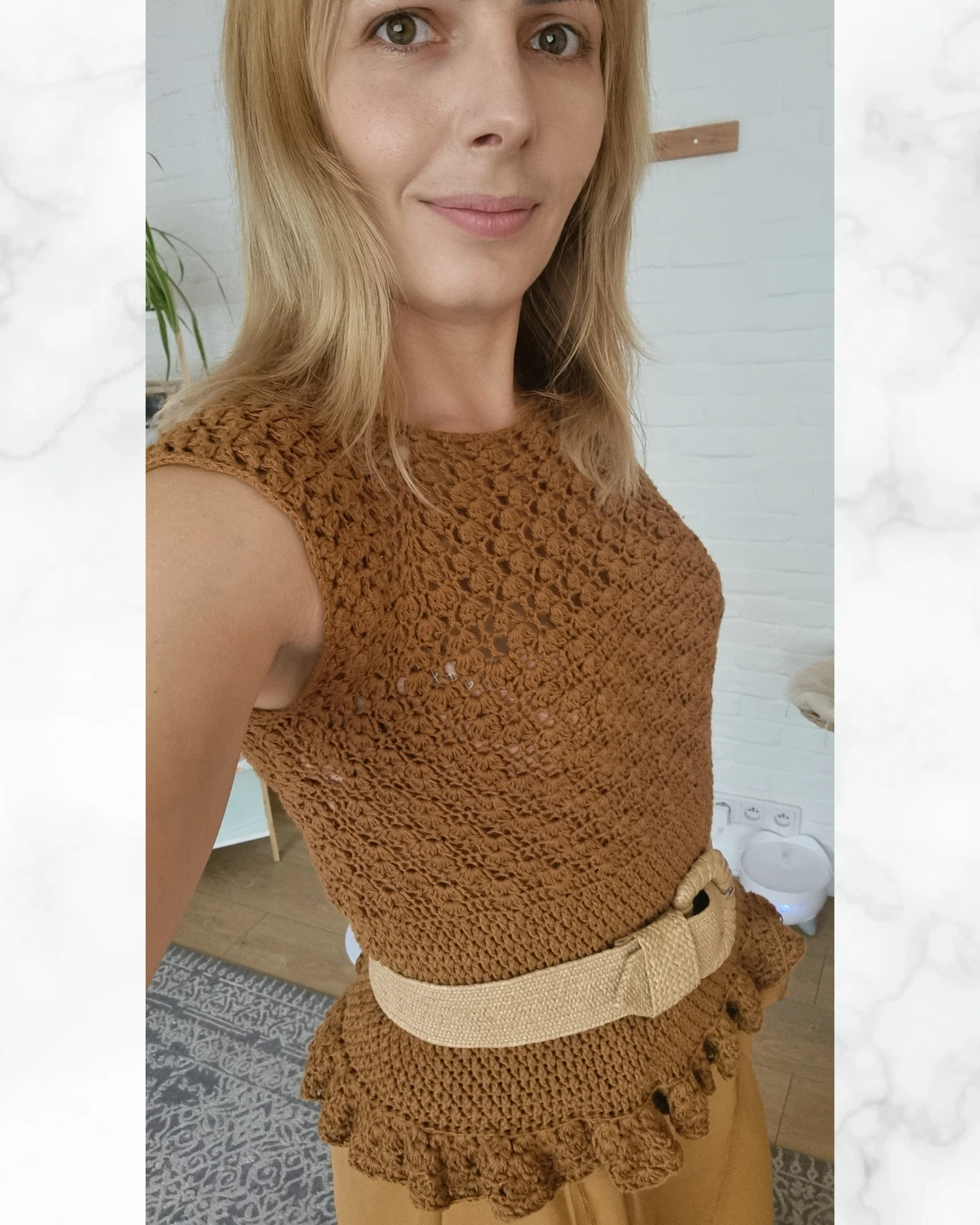Bluzka, tunika czy sukienka? Nie musisz decydować od razu – w trakcie pracy możesz wybrać, jak długa ma być Twoja Cynamonka. Dzięki sprytnej konstrukcji od góry, bezszwowo, łatwo dopasujesz projekt do siebie.