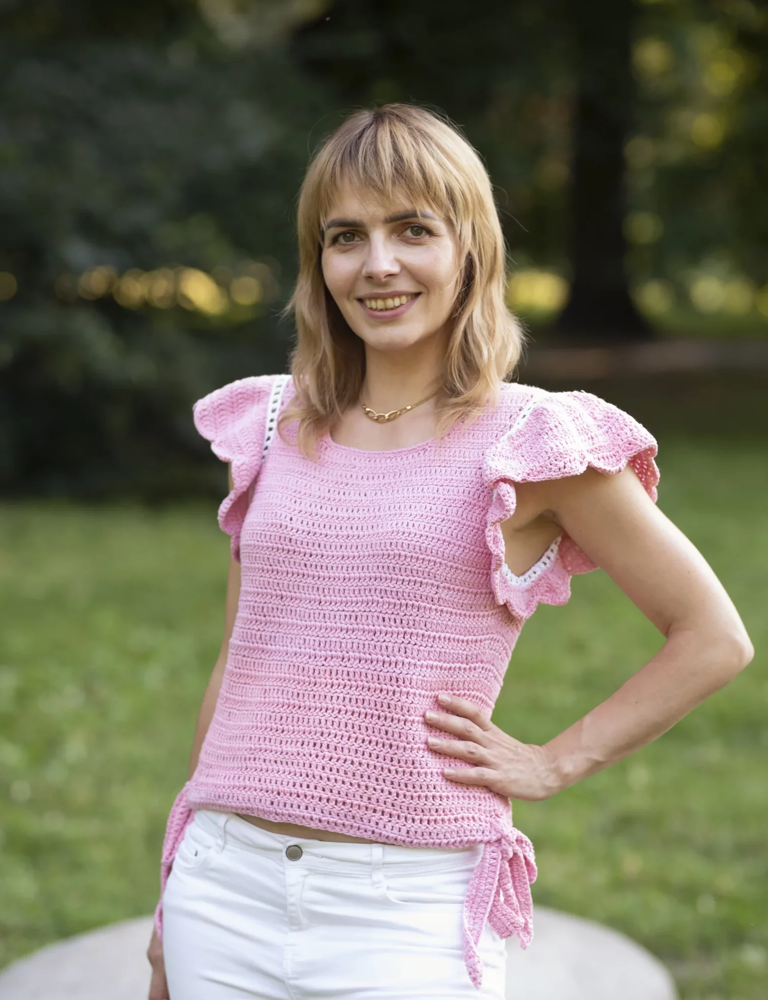 Stwórz wyjątkową szydełkową bluzkę z pięknymi motylkowymi falbankami, korzystając z gotowego do wydruku wzoru z instrukcjami.